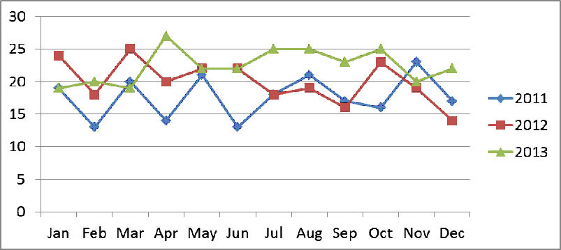 Number of Hearing Aids Sold by Location from 2011 to 2013